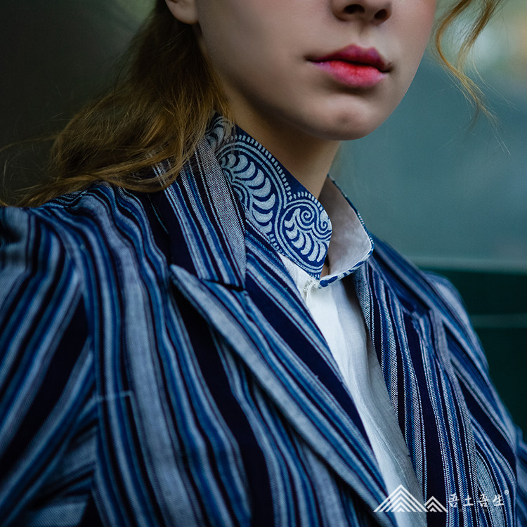 Wutu Wusheng's new fashion week handmade blue indigo dyeing and weaving light luxury spring and autumn women's casual suit jacket stripes