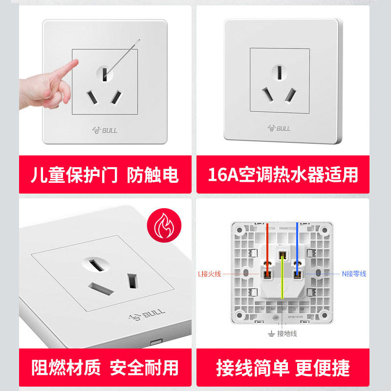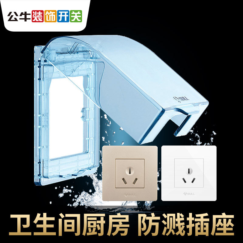 Bull water heater waterproof socket Bull waterproof socket water heater special 86 type 16A bathroom waterproof protection cover with cover switch splashproof box