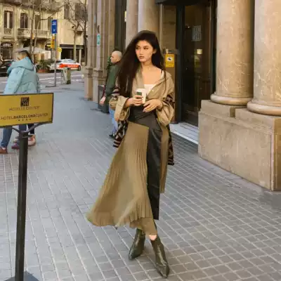 SNT Ace puts on the fashion blogger's small waist slim leather waist seal pleated skirt women's spring and summer