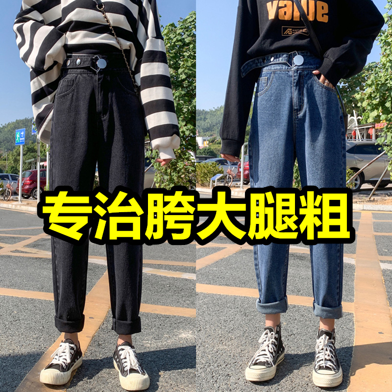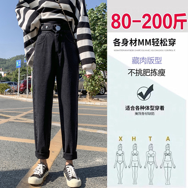 High-waisted jeans women's straight loose 2022 new spring and autumn dad casual slimming nine points Harlan Lob pants