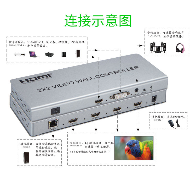 The new 4-way smart TV splicing box display projection screen 1 in 4 out large screen splicing playback processor