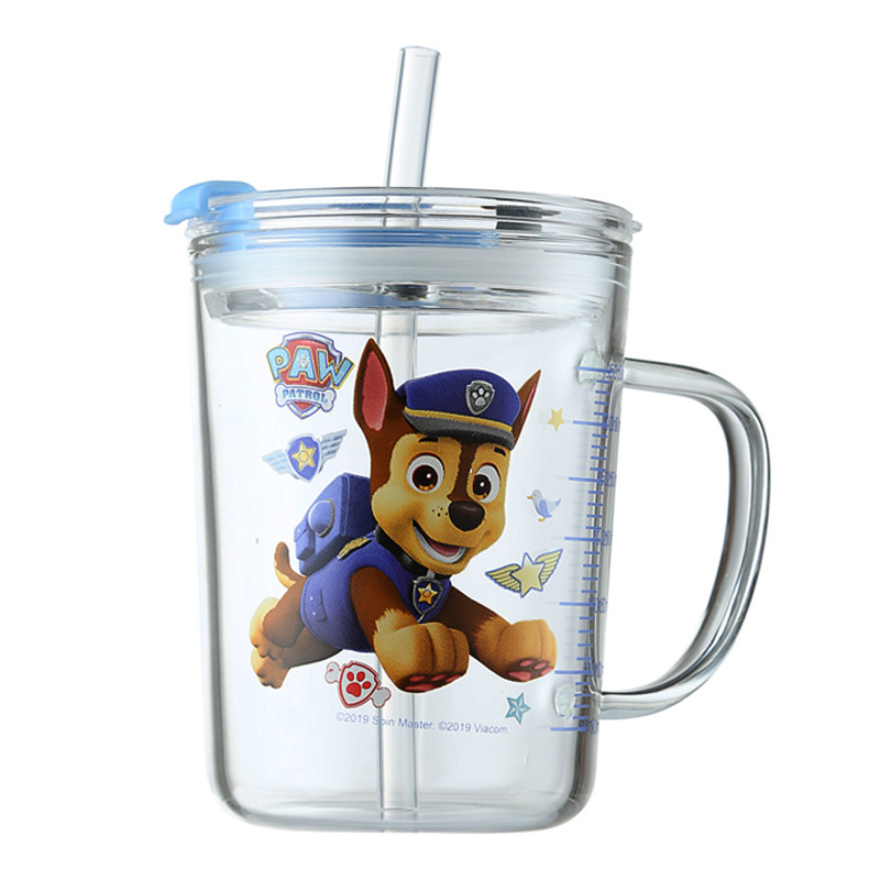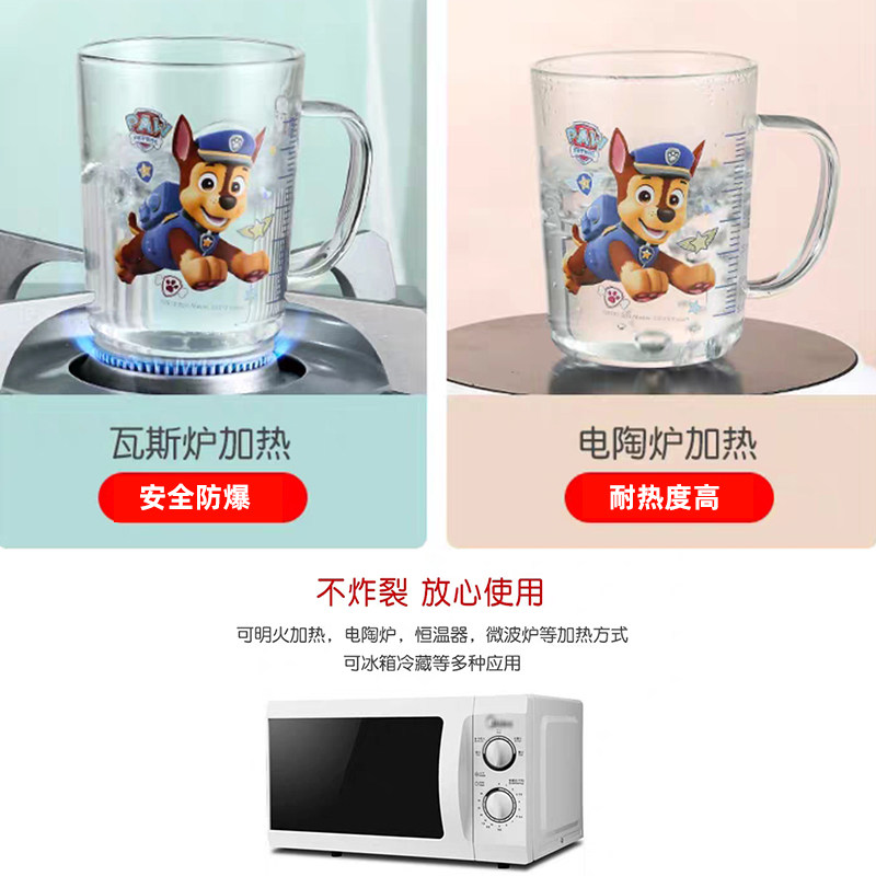 Barking team household children's milk cup Scale cup Straw Glass water cup with lid can be heated in microwave oven