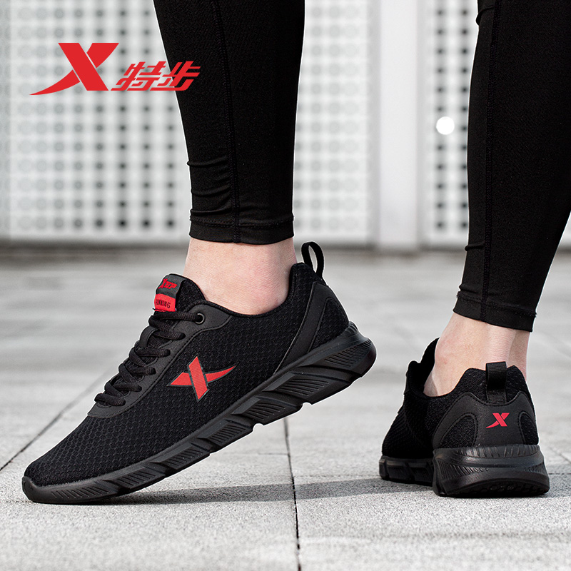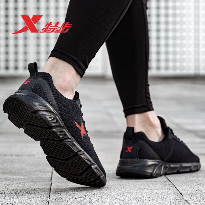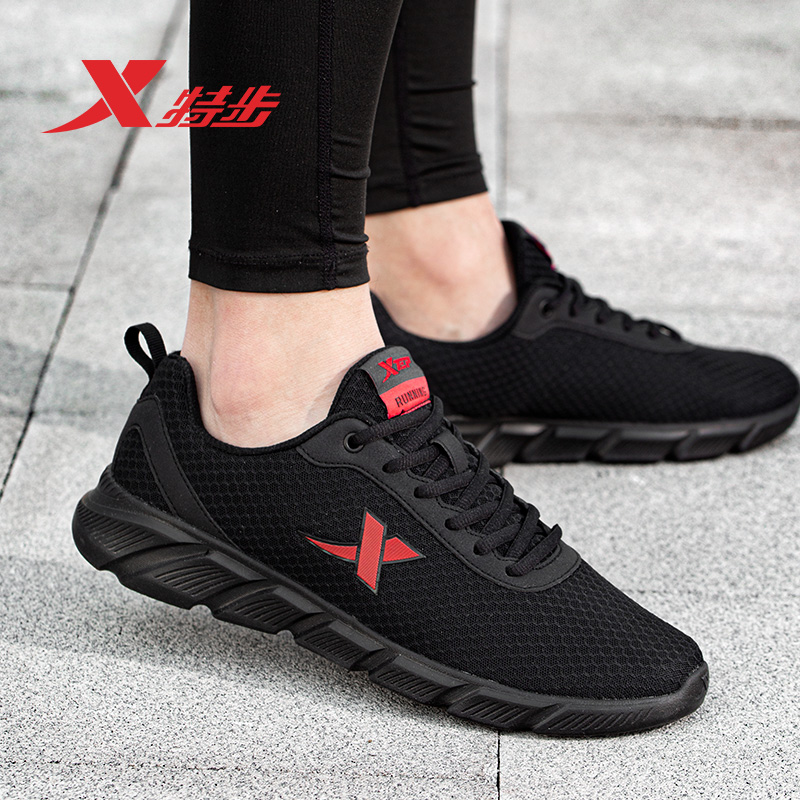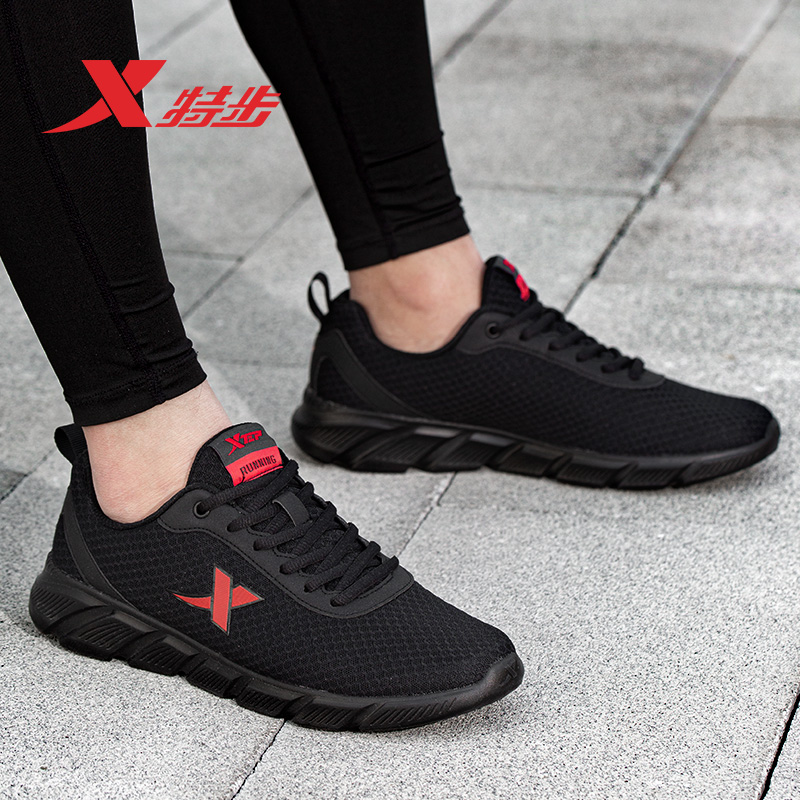 Xtep men's shoes sneakers men's couple new autumn and winter black mesh women's breathable mesh summer official running shoes