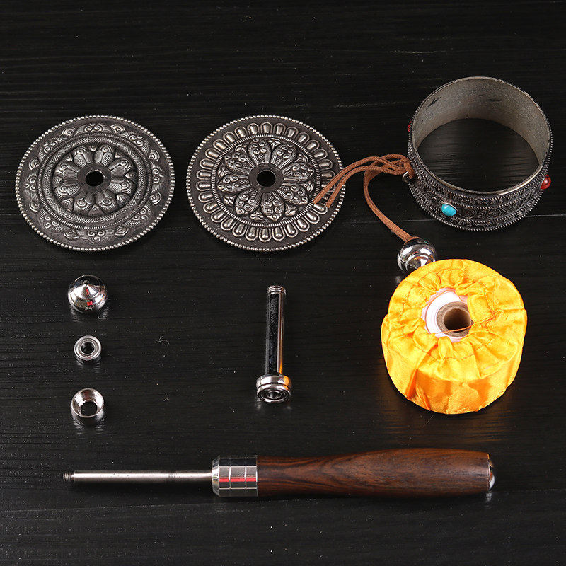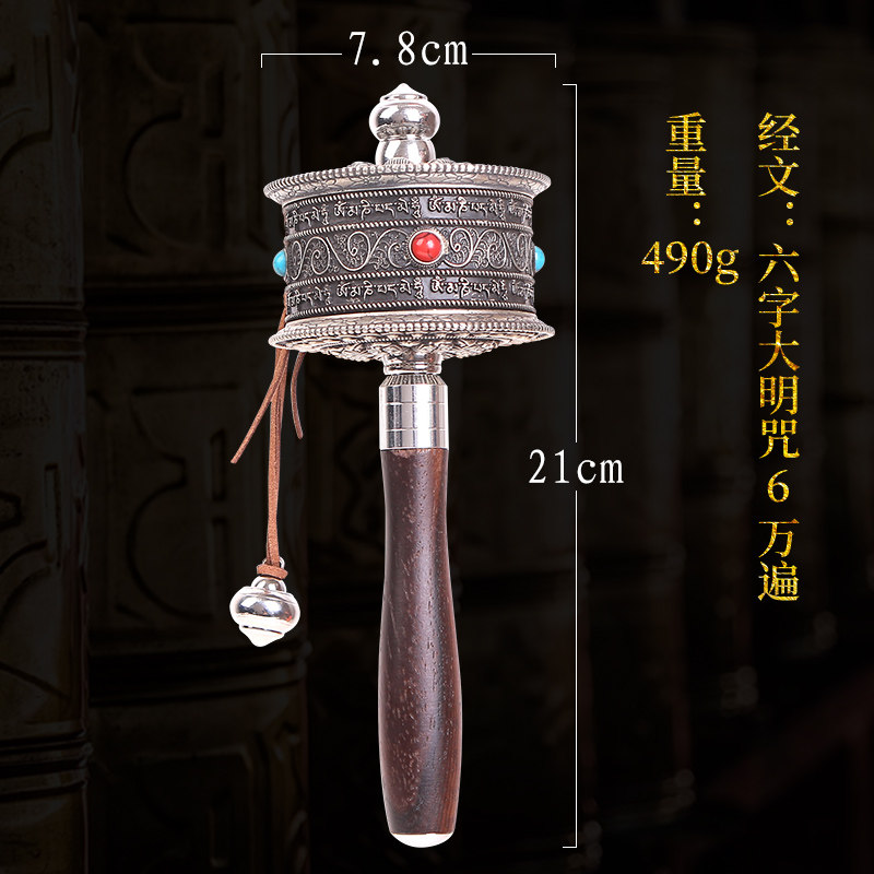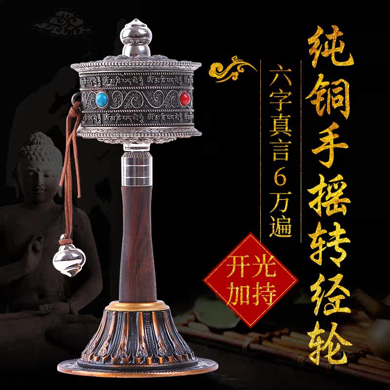 Pure copper hand-cranked Six-word Daming mantra Turn Sutra wheel open light turn Sutra tube Medium Guanyin Heart Mantra Silver double bearing Mute