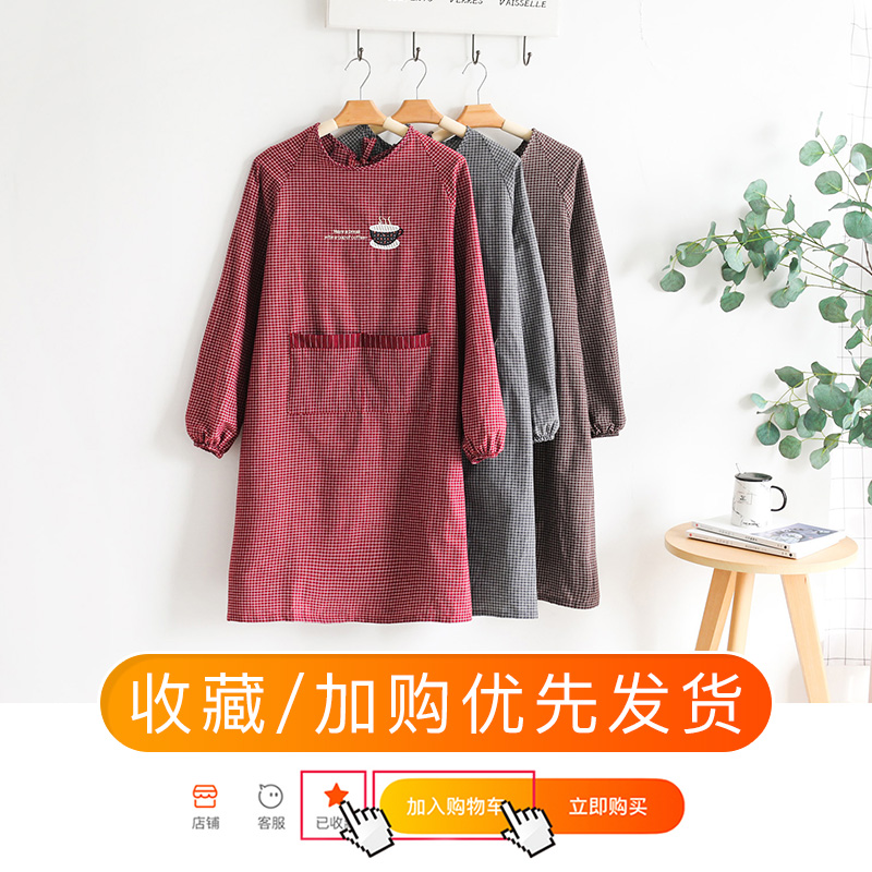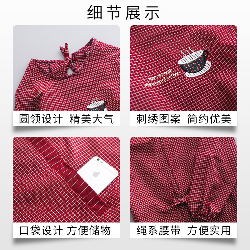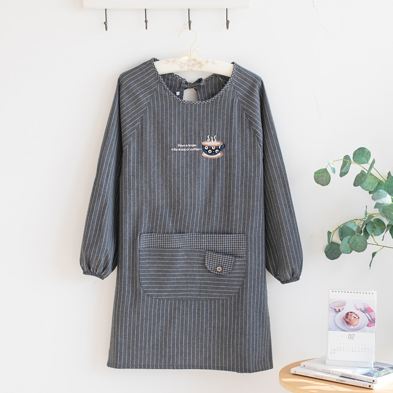 Red (vertical striped coffee embroidered long sleeves apron) grey (vertical striped coffee embroidered long sleeves apron) grey (fine coffee embroidered long sleeves)