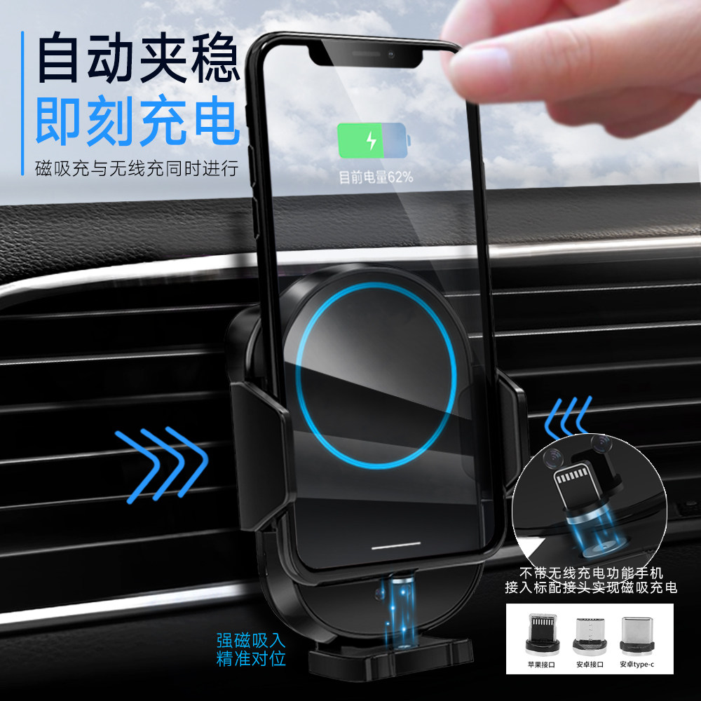 Wireless fast charging car mobile phone bracket 2021 new car charger air outlet navigation fixed support