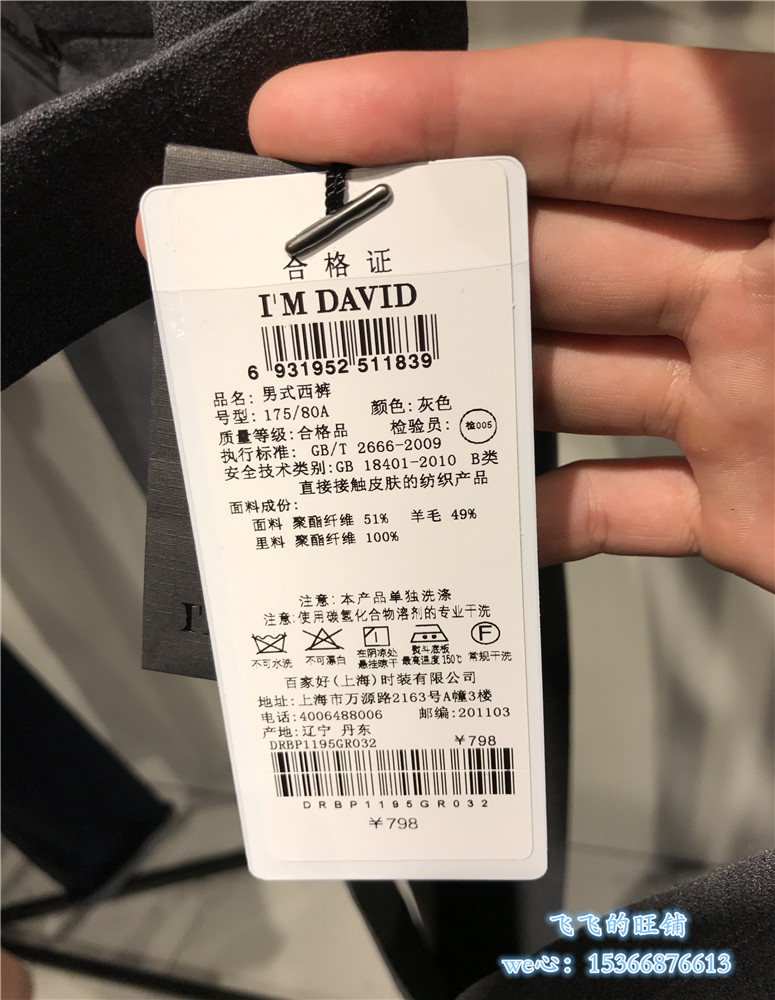 IM DAVID MEN's spring Korean version of business fashion handsome gray trousers men's pants DRBP1195-798