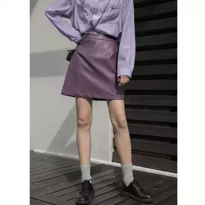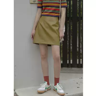 Hello Cannon matte small leather skirt skirt female 2021 spring new retro high waist thin A-line short skirt tide