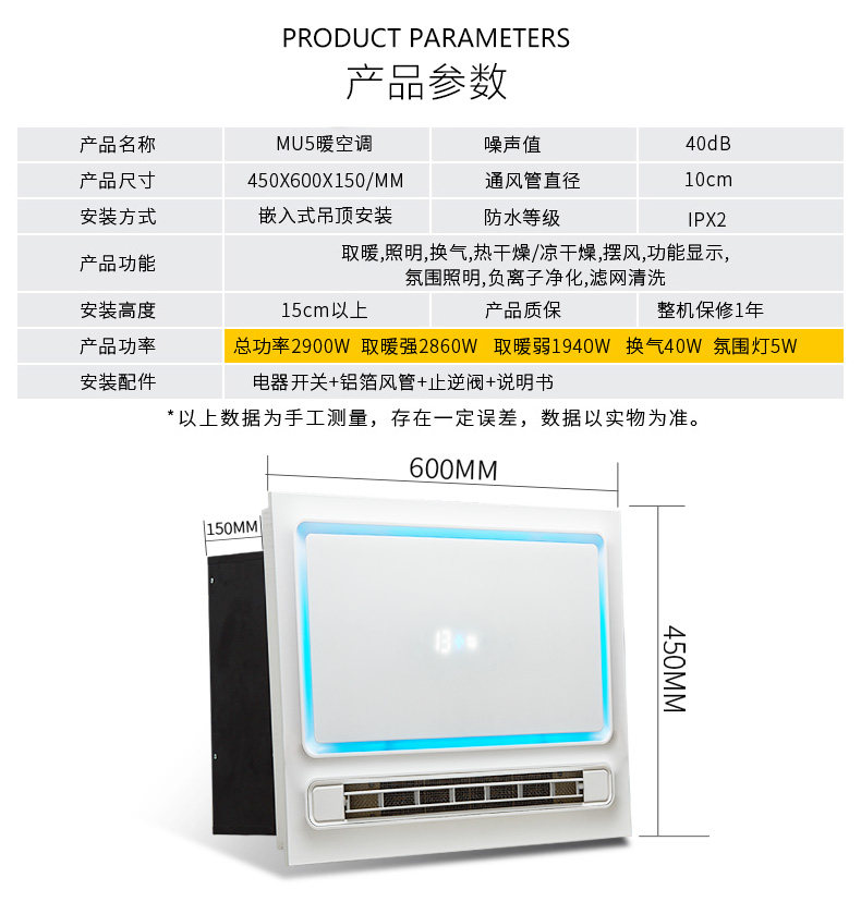 Merkett integrated suspended ceiling U5 bathroom heating air conditioning toilet smart heater powerful all-in-one bath master