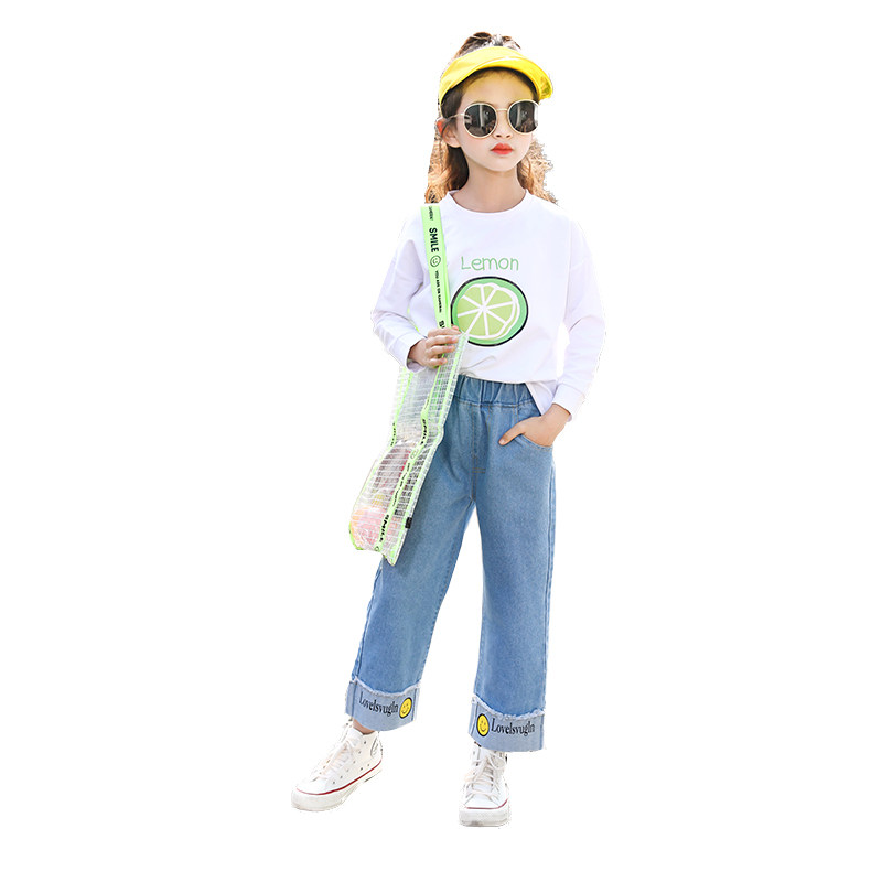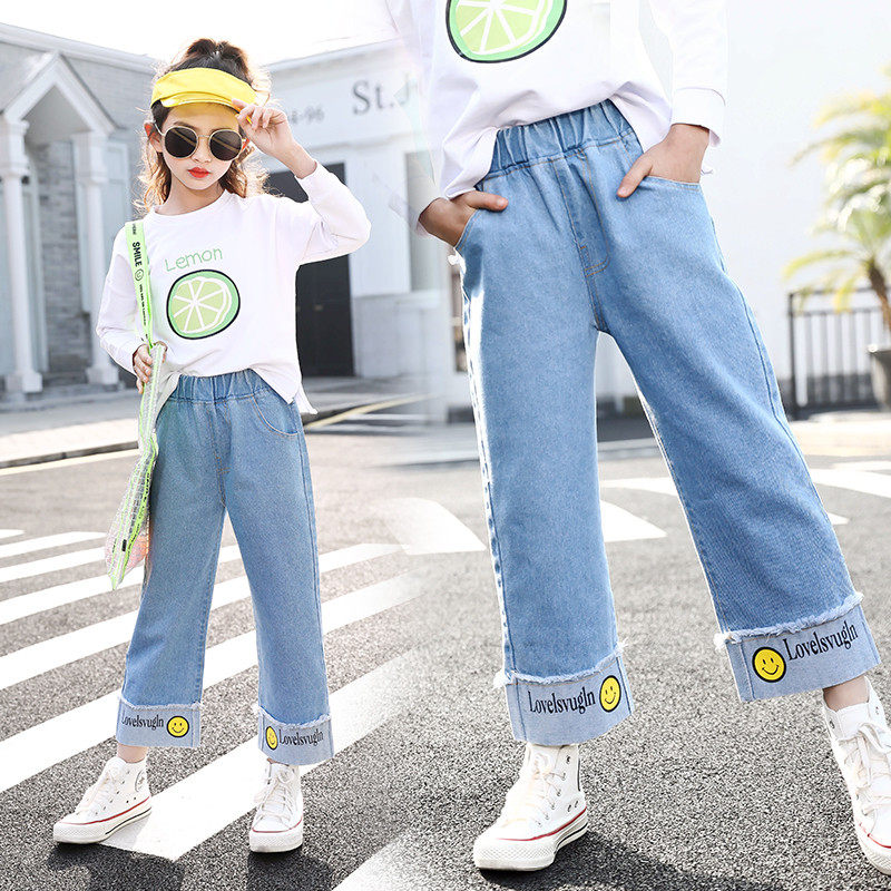 Girls with broad legged jeans and loose Han straight tube girls broad legs in spring and autumn 2021 new yang childhood pants