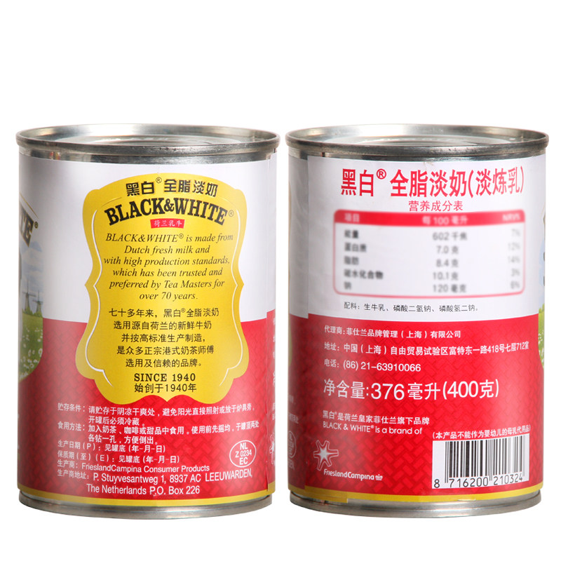 Baked egg tart black and white full-fat evaporated milk Dutch imported Hong Kong-style milk tea milk tea shop special 400g