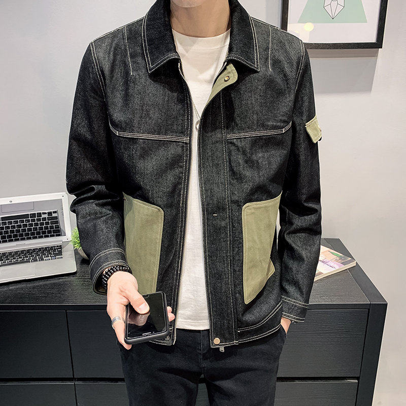 Spring and Autumn New Denim Jacket Men's Tide Brand Handsome Workwear Jacket Casual Functional Trend Top D0225
