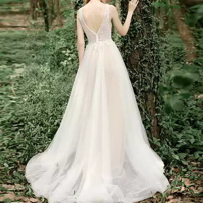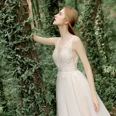 Difanna original forest shoulder deep V beaded lace thin trailing light wedding dress small fresh welcome dress female