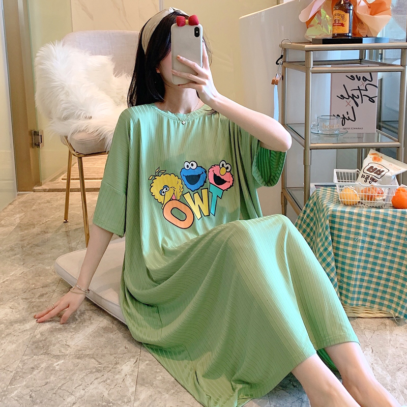 Night dress women's summer thin cotton pajamas Modal loose large size fat mm pregnant woman 200 pounds long dress
