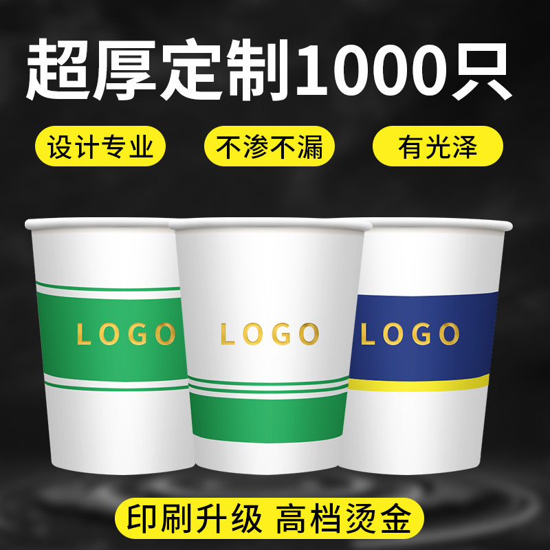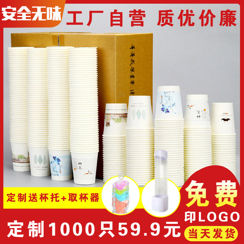 Disposable paper cup custom printed logo commercial thickened household water cup bronzing 1000 pieces in a whole box batch of cups