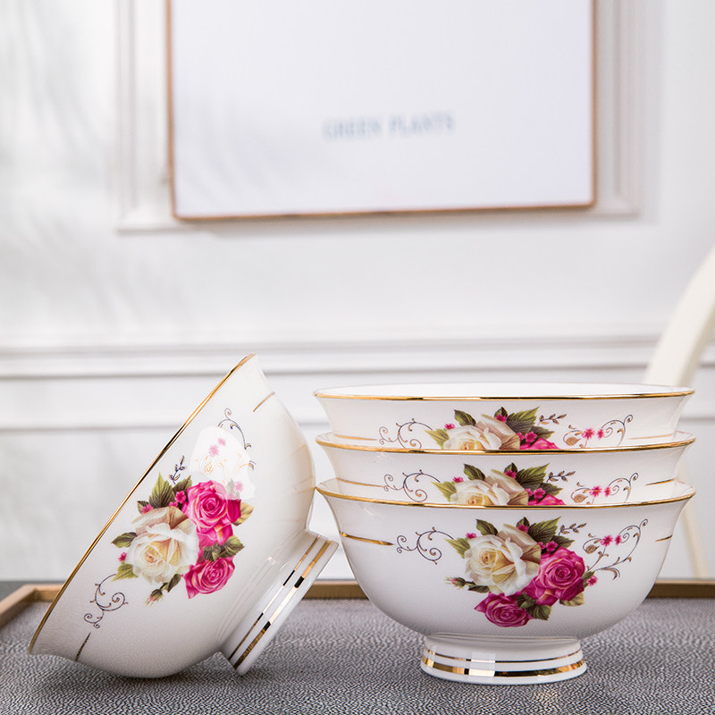 Jingdezhen bone porcelain tableware sets a family of four DIY loose pieces free lap Home Phnom Penh Ins net red bowls furniture