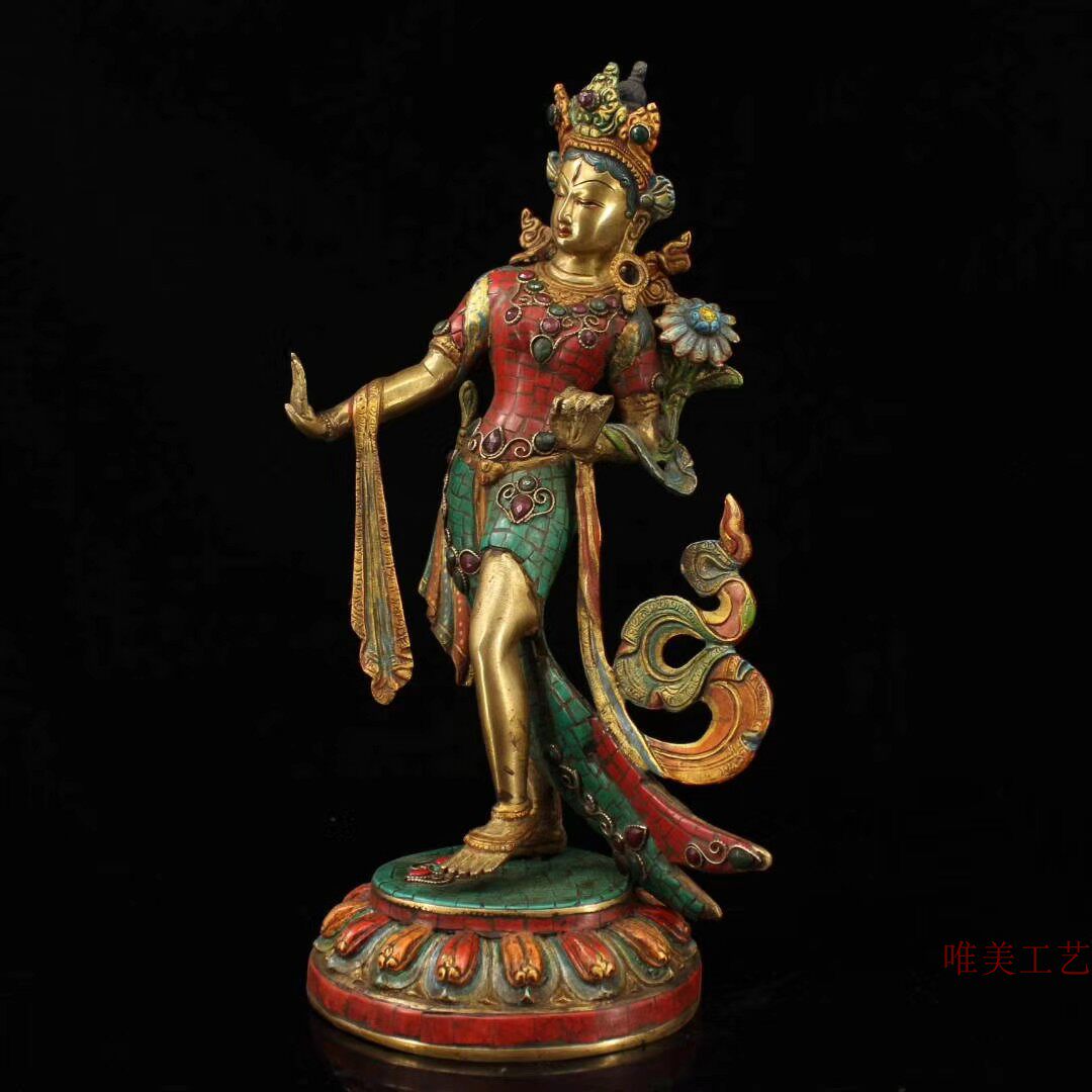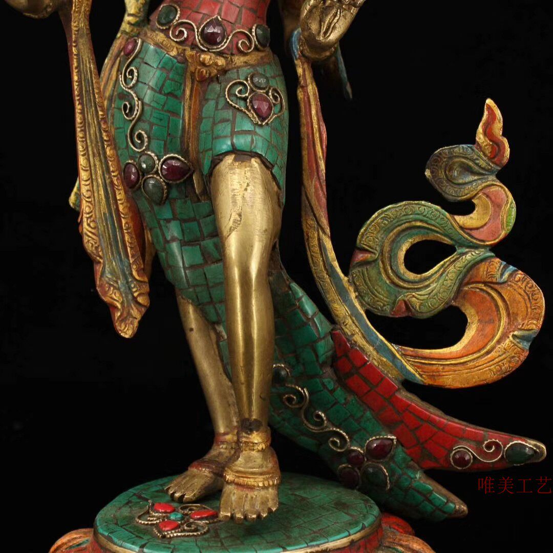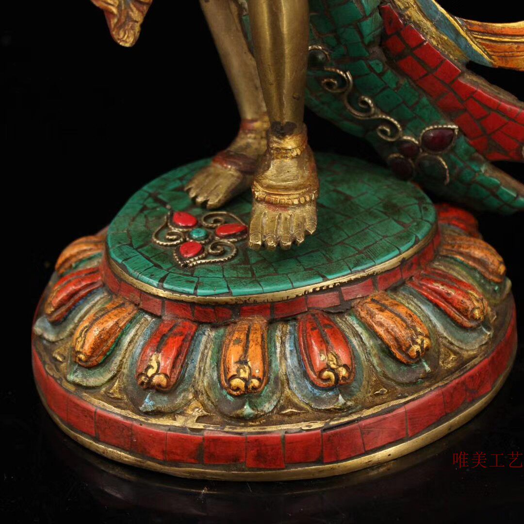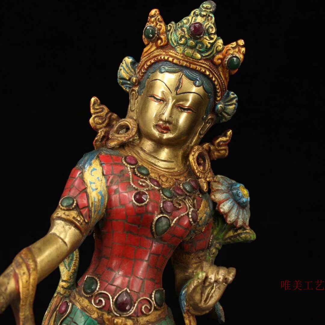 Old bronze with hand-inlaid gemstone painted by gold station, green mother of green