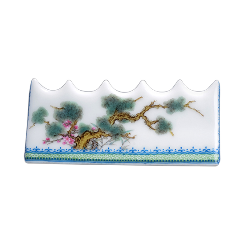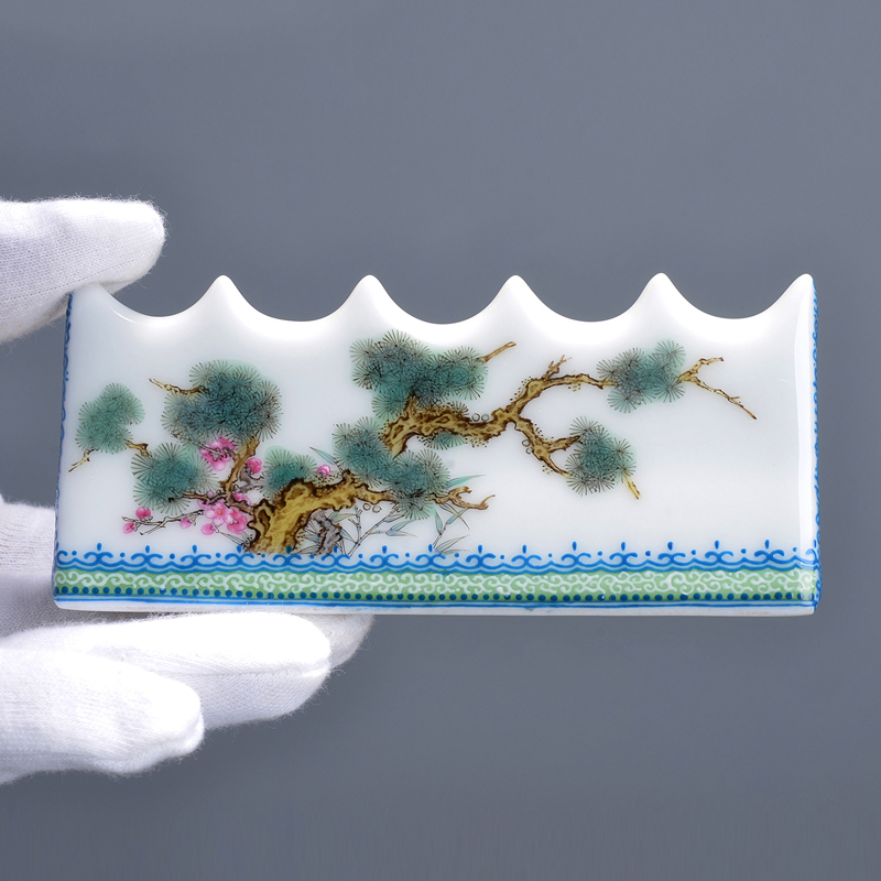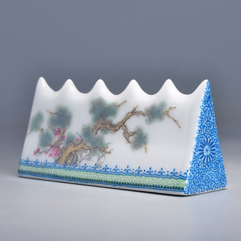 Gerware Enamel Polychrome Pine Bamboo Plum-year-old chill Three Friends Pen Mountain Wenfang Four Treasure Jingdezhen porcelain handmade hand-painted