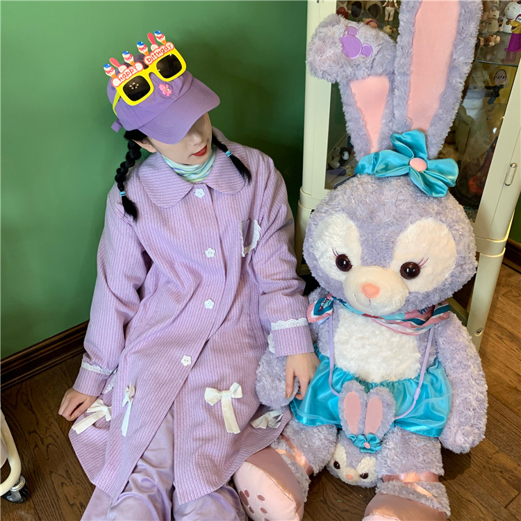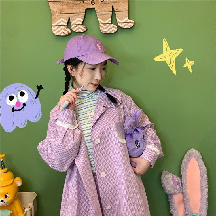 Omelet Rice Restaurant Homemade Windbreaker Women's Mid-length Purple Girls' College Style Casual Slim Loose Fashion Coat