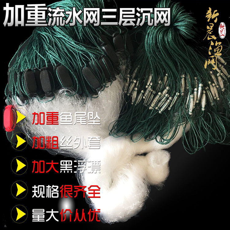 Aggravated rapids water net 6 points 7 points 8 points 9 points three-layer fishing net white striped crucian carp net sticky net wire mesh hanging net fishing net