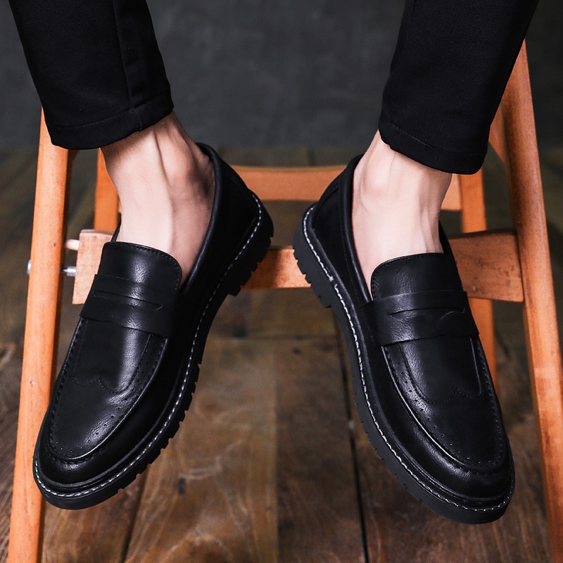 Spring business breathable leather shoes Men's work Deodorant One foot pedal Lefoe shoes Men's Inn Leisure shoes Han prints Lazy Shoes