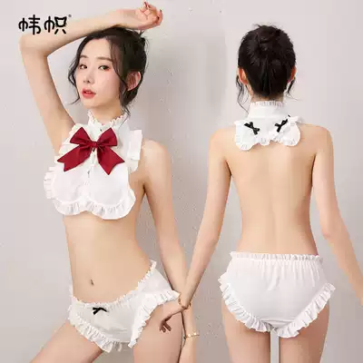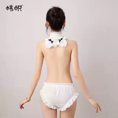 Banner bow maid outfit sexy two-piece suit Chiffon ruffle soft cute fun semi-transparent cute pajamas