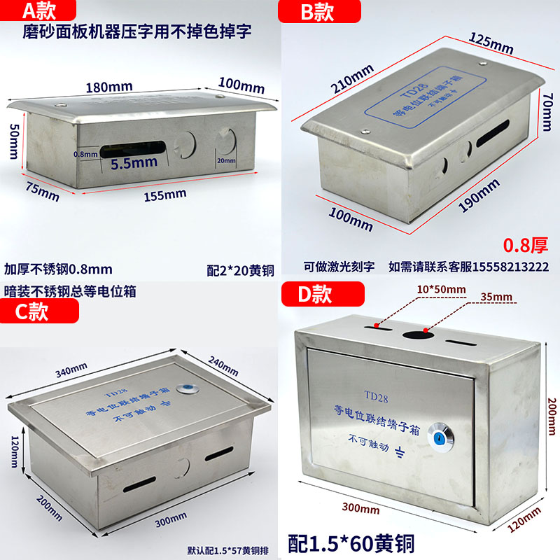 Punching font thickened equipotential A section of medium stainless steel and other potential B Miniaturized makeup room 304 material flush pressure thickened stainless steel and other potential