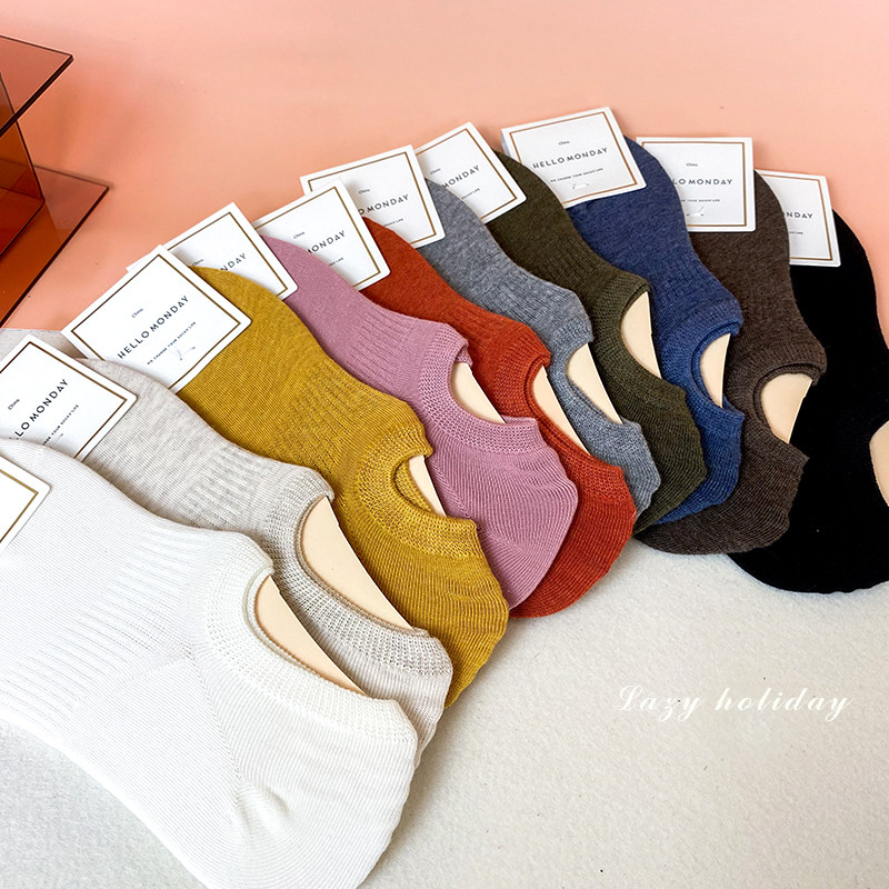 Lazy Holiday Morandi color invisible socks shallow mouth female invisible silicone non-slip summer thin solid color
