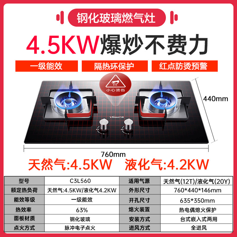 Wanhe C3L560 gas stove gas stove natural gas stove liquefied gasification household double stove energy saving embedded fire stove