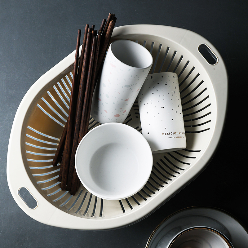 Double layer with lid plastic wash basket kitchen asphalt basket with multi-function round fruit basket