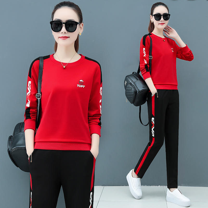 Leisure sports suit female spring and autumn 2022 new western style fashion square dance dancing long-sleeved thick cotton T two-piece suit