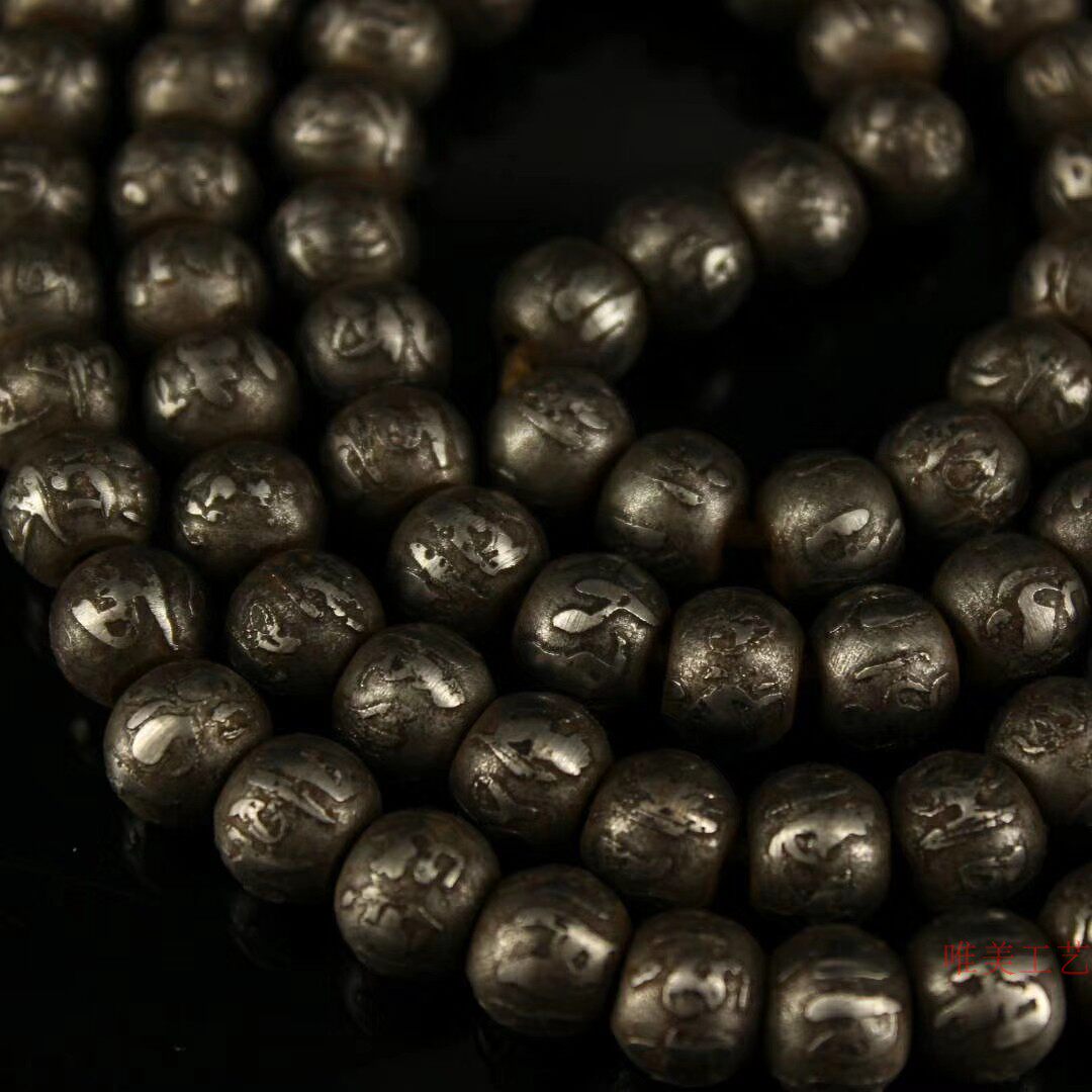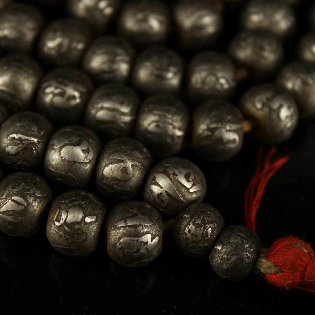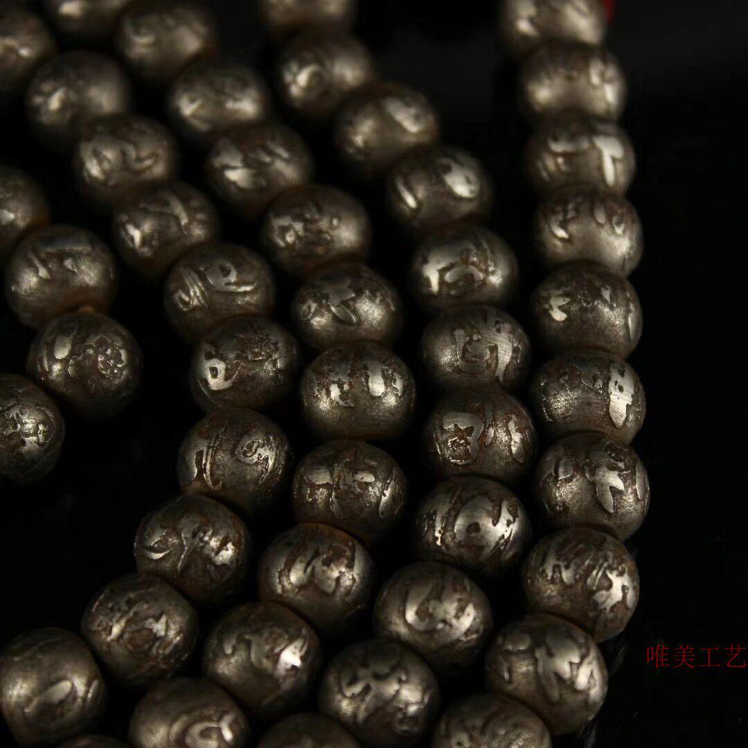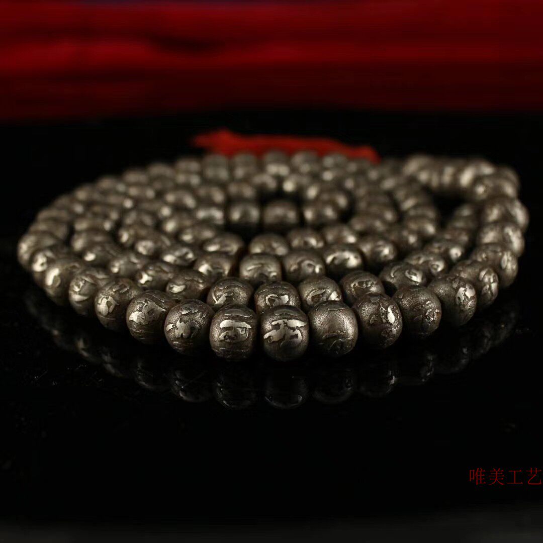 Gu Yixuan old pure handmade black iron to create carved six-character mantra 108 beads