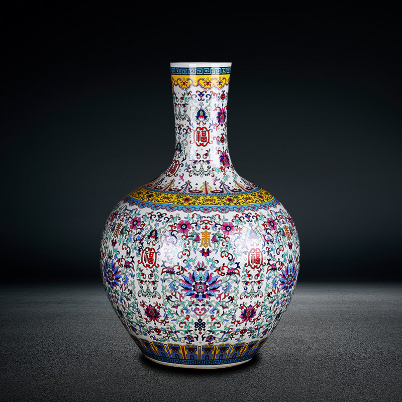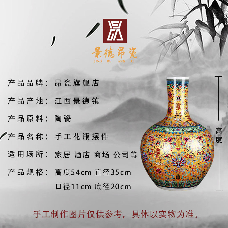 Jingdezhen Ang porcelain ceramics floor-to-ceiling large vase antique Chinese home decoration porch decoration celestial ball bottle