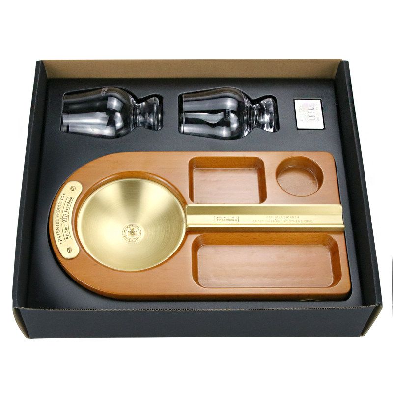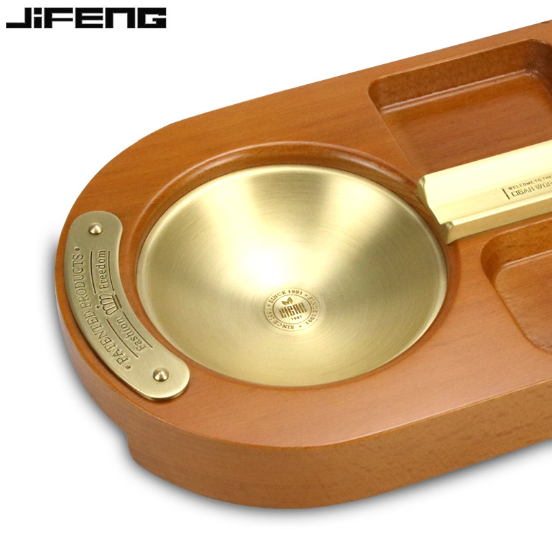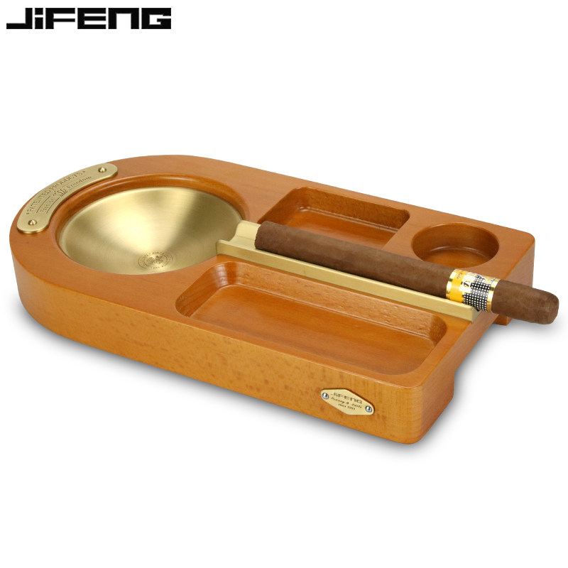 JIFENG monsoon cigar ashtray metal large number single tank smoke cylinder solid wood cylinder body creative fit with red wine glass-Taobao