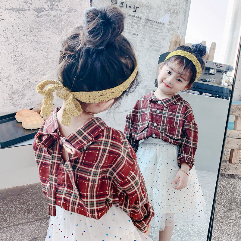 2022 girls dress for spring clothing new behind knotted Korean version children long sleeve shirt female baby kid polo shirt