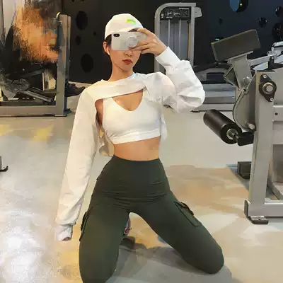Wang Umi European and American net celebrity ins fitness clothes loose ultra-short sweater blouse sexy hooded chest hollow top female