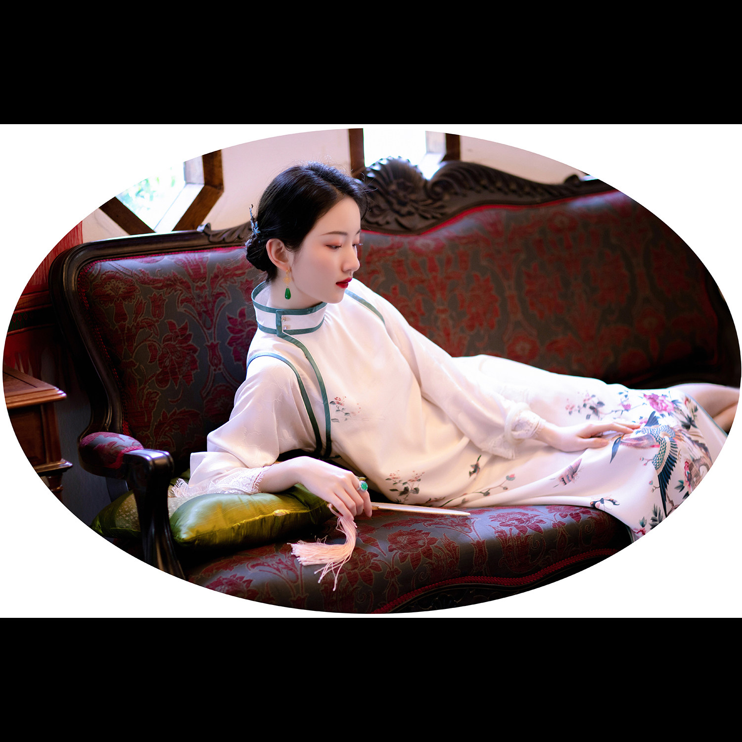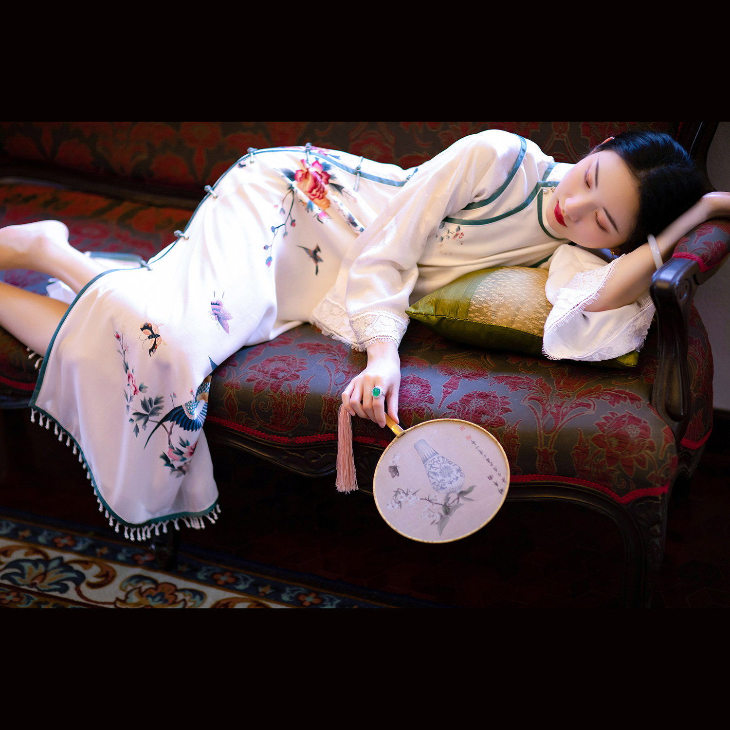 The Fengqi -- a city of wind power -- spring and summer New China's windy and genuine silk printed bobsled daily improvement of the qipao foreign dress