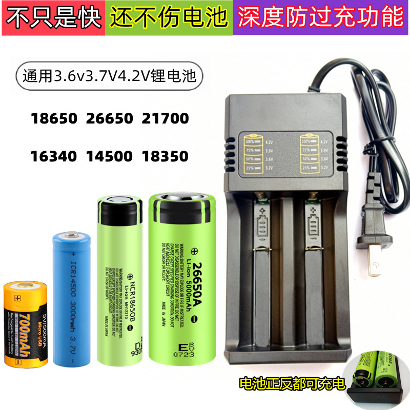 18650 Lithium Battery 3 7v Quick Charge Head Light Torch 26650 Large Capacity Versatile Versatile 4 2V Charger