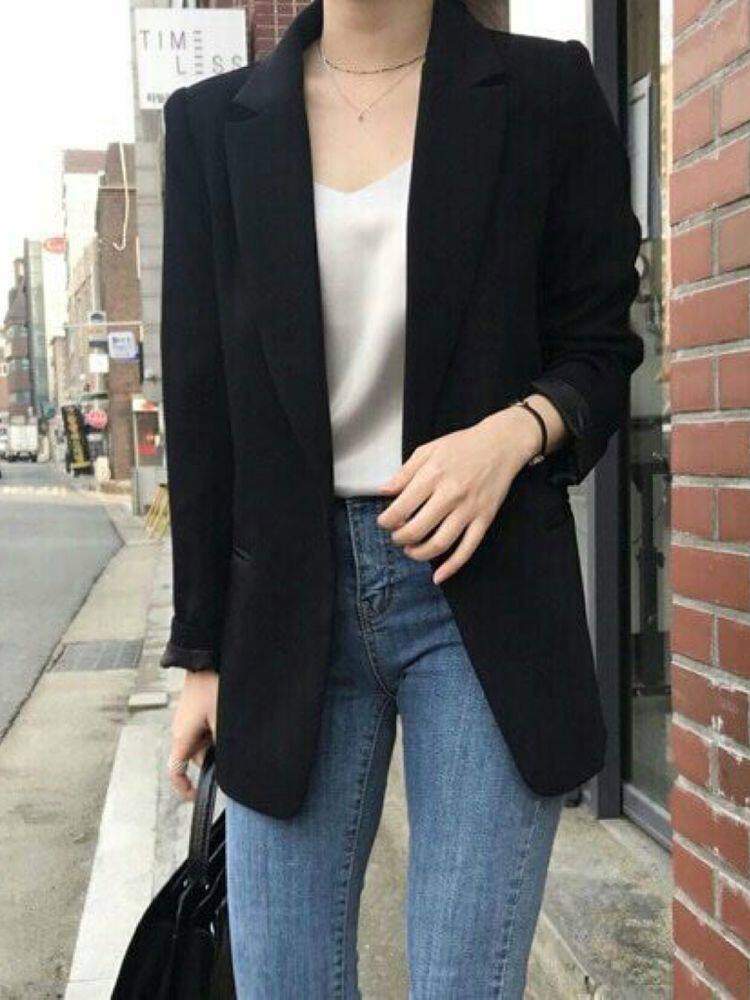 Single buckle suit women's autumn new coat loose Joker BF wind foundation Korea East Gate