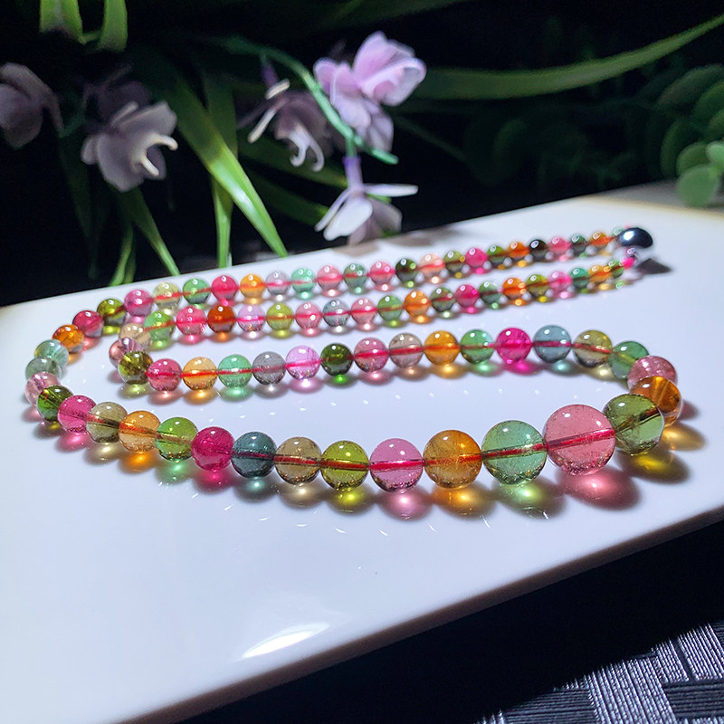 Single Hand Bite Seal Necklace Heavy 44 41 gr Beads 4 7-11 Mm Natural Crystal Candy Color 17622 Spot