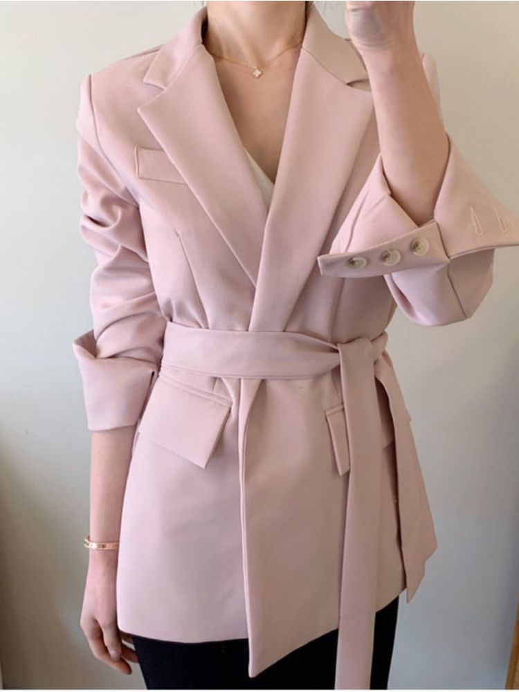 Belt Turnable Cuff Rear Open Fork Casual Suit Jacket Korea East Gate Autumn Dress New