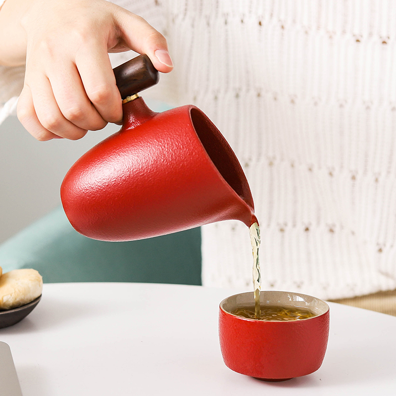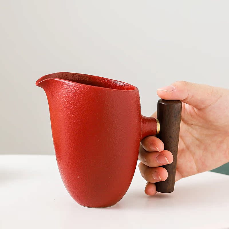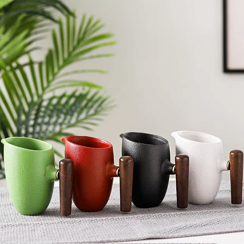 Ceramic solid wood side handle Fair cup tea divider Tea Sea Japanese coarse ceramic wood handle male cup anti-scalding Kung Fu tea accessories