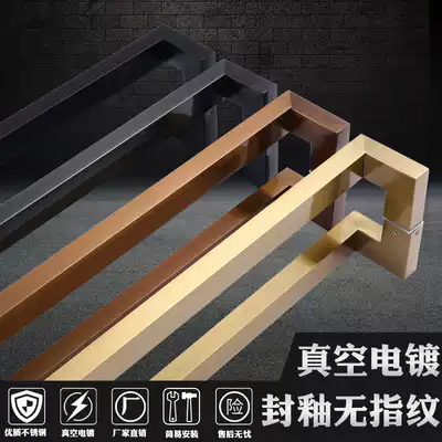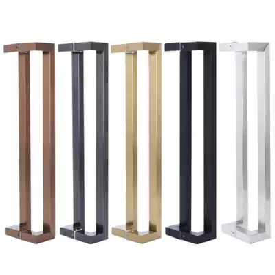 Glass door handle Stainless steel square tube double curved black black titanium alloy Rose gold mounted wooden door push-pull door handle