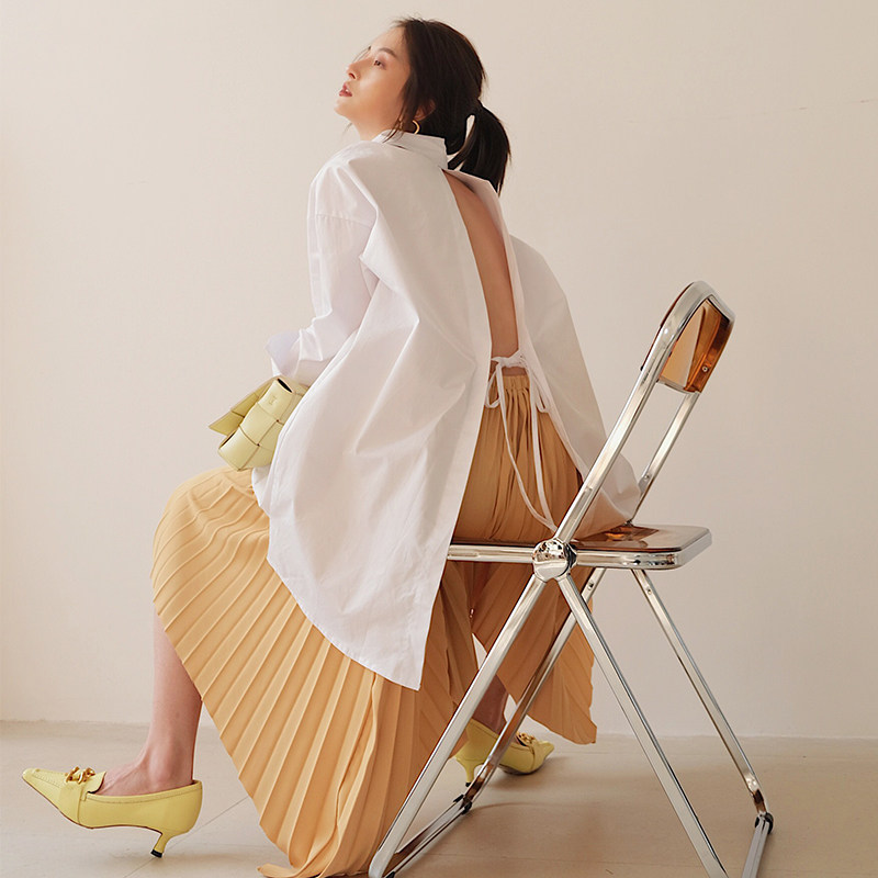 ROEYWANG Fashion Han Edition Women's Leisure Renaissance Vintage Chic Design Sense Backward with hollowed shirt