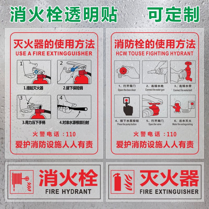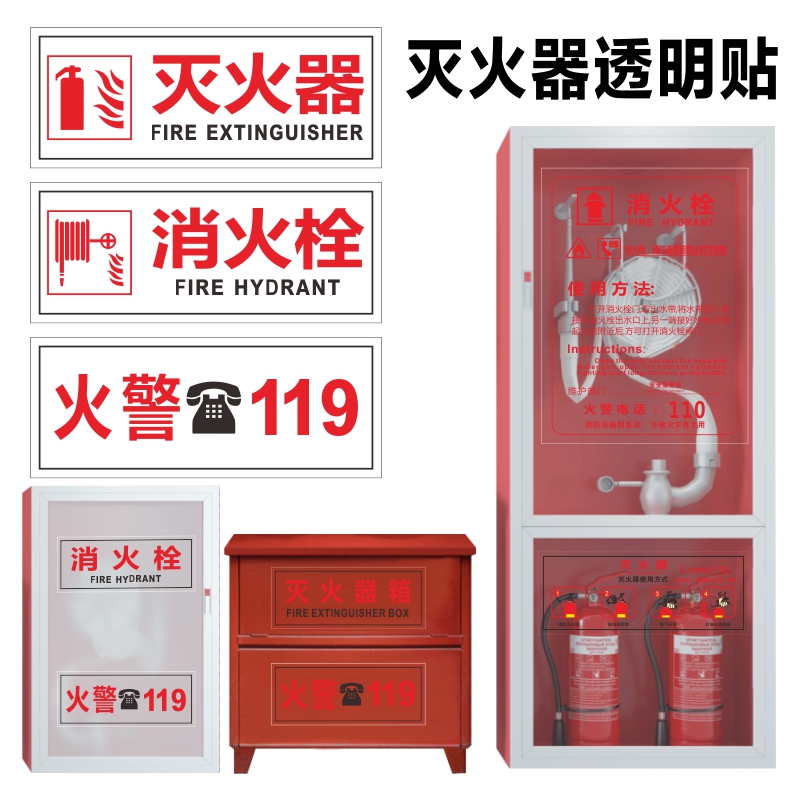 Fire Extinguisher Transparent Sticker Fire Hydrant Sticker Fire 119 Warning Sticker Fire Facilities Inspection use Method ID Labeling Fire Stickers Glass Stickers Fire Hydrants Box of Fire Extinguishers Box Signs Cards
