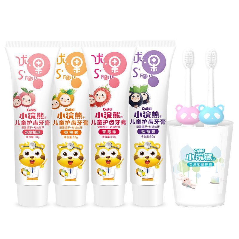 Small raccoon child toothpaste 3-6-12 years old without Fluoro fruity baby toothpaste delivered toothbrush water glass-Taobao