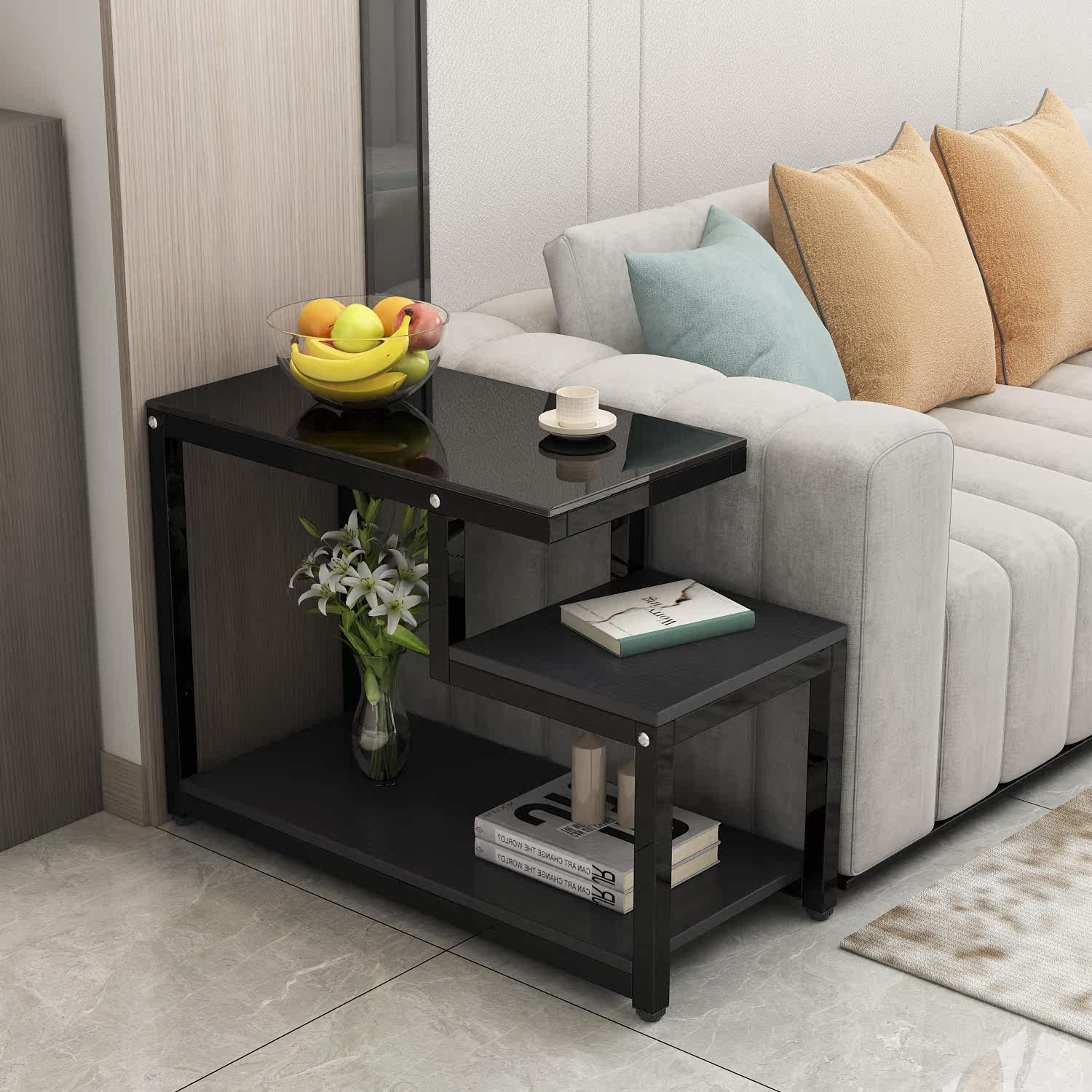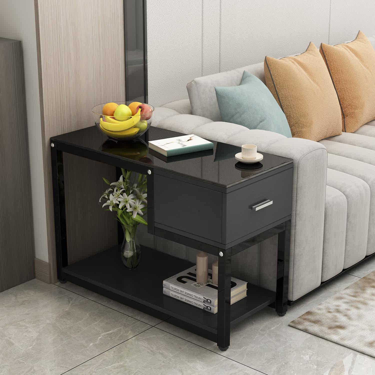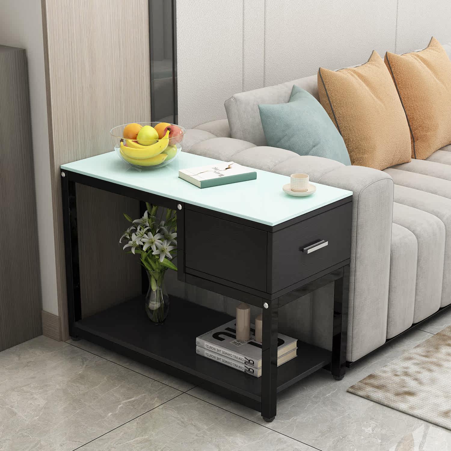 Simple and light luxury tempered glass sofa side table living room bedroom storage cabinet tea table telephone several Nordic wrought iron corner cabinet