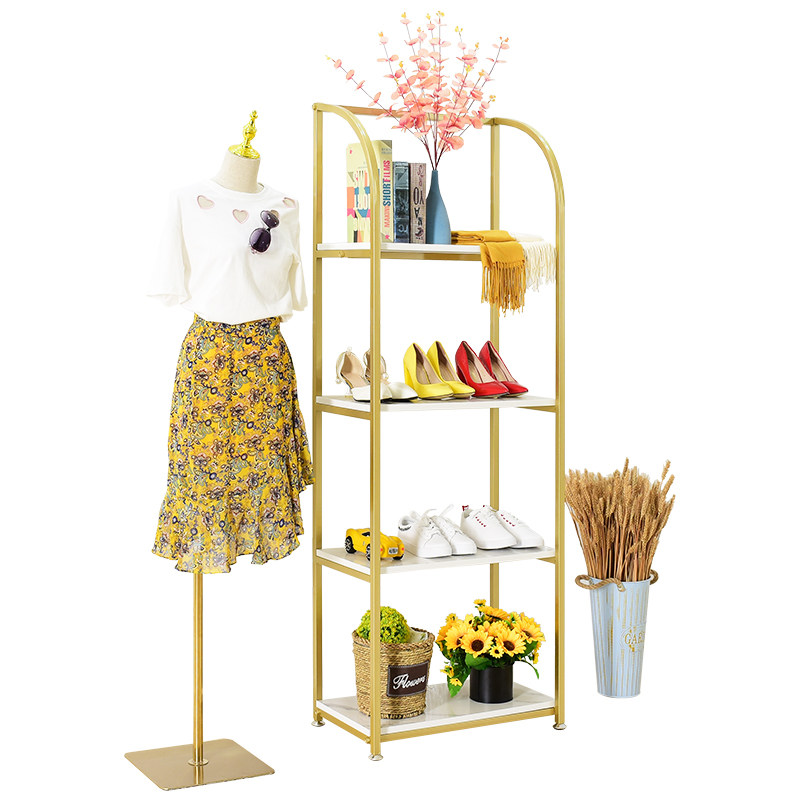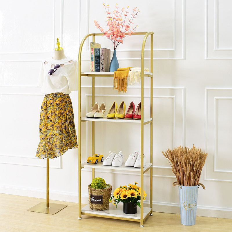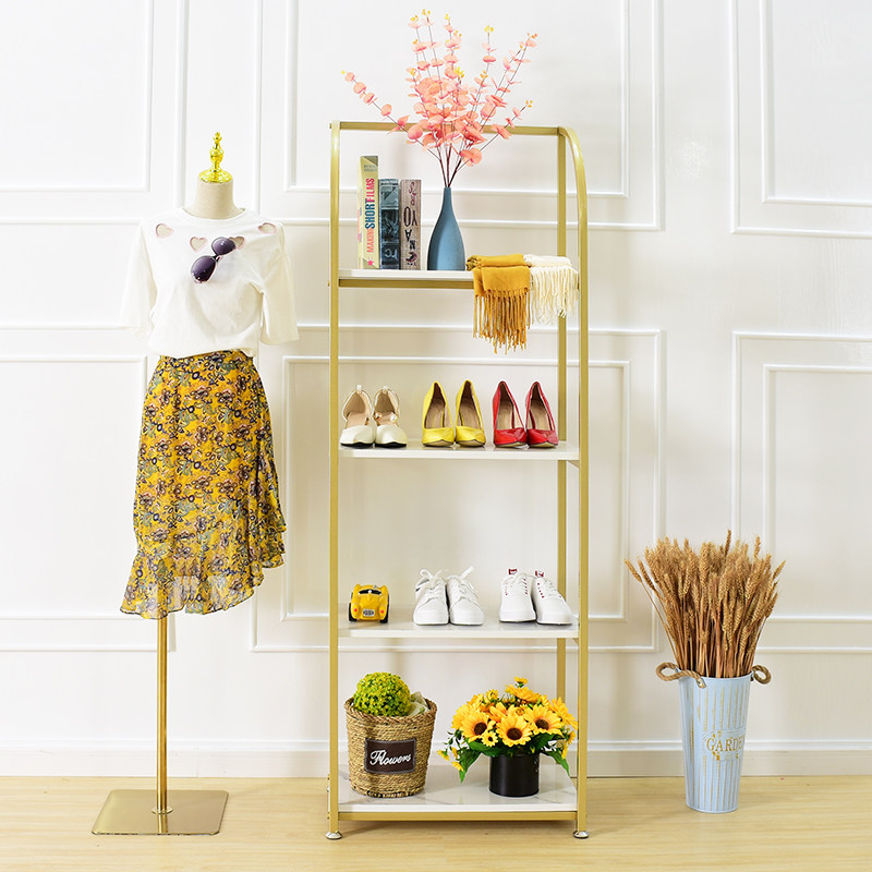 Clothing store window decoration display rack shoe shop shoe bag rack multi-layer storage rack wrought iron gold shelf women's clothing rack