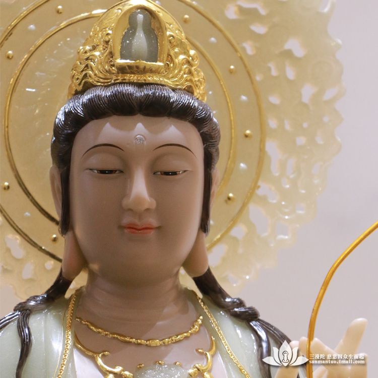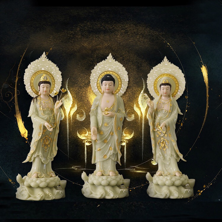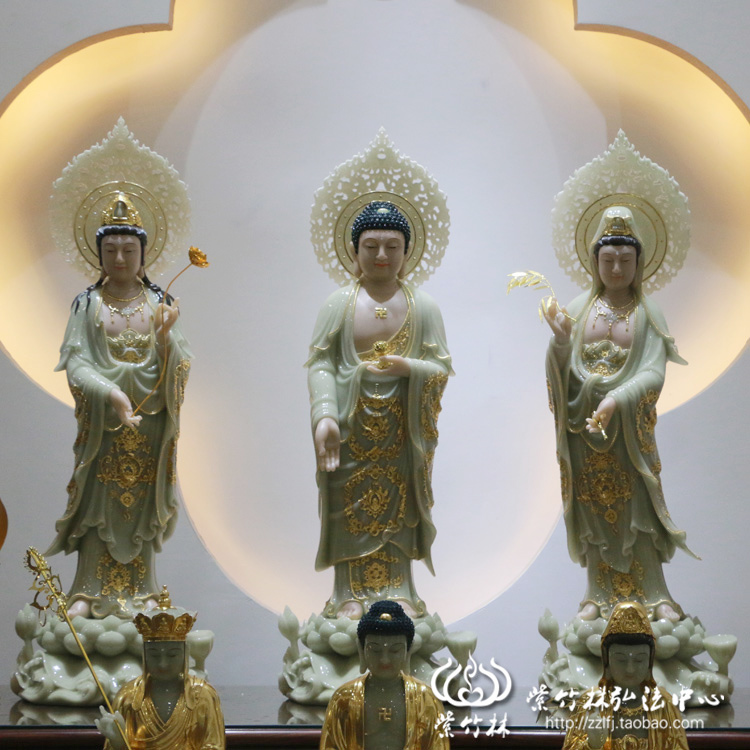Three cartoons of the Han Bai jade jade Buddhist statues at the mercy of the big trend to the Bodhisattva Buddha statue of the western Sanholy view of the Bodhisattva Buddha