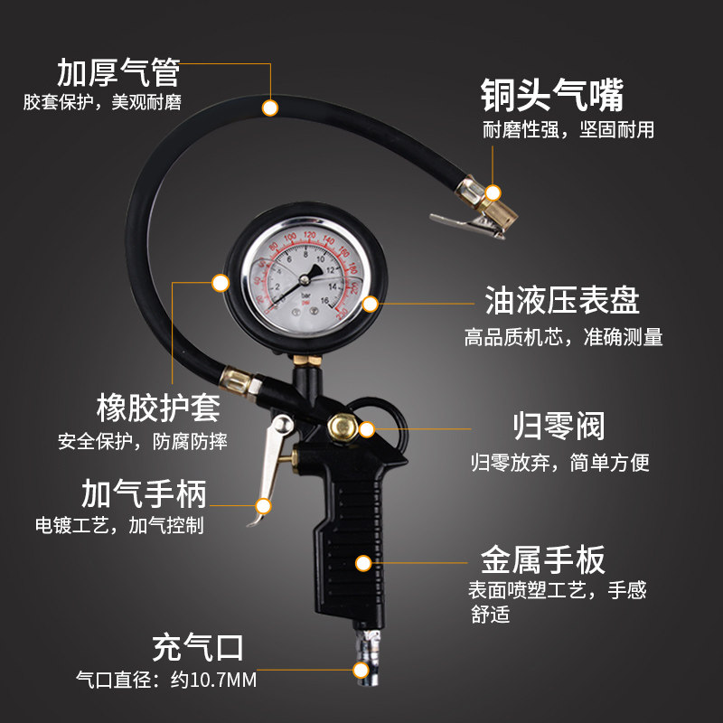 High precision oil immersion tire pressure gauge + trachea (nozzle cap + tire repair tool)
